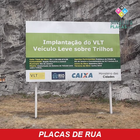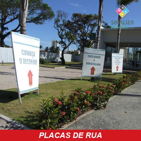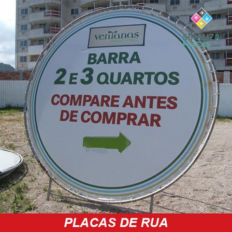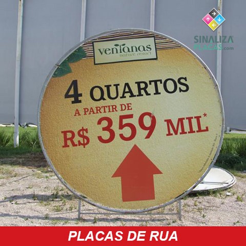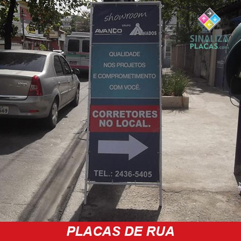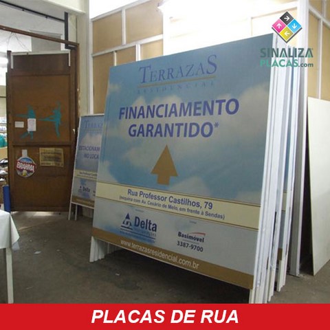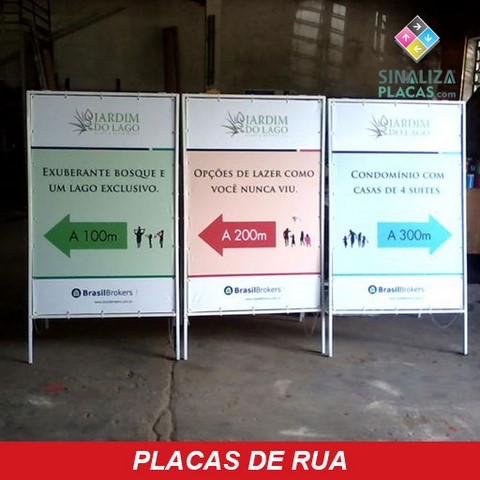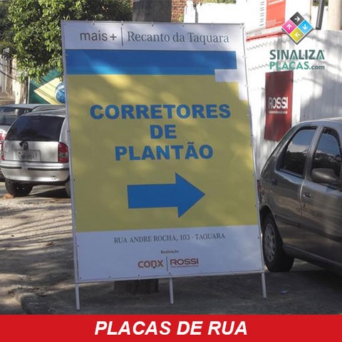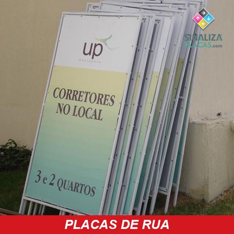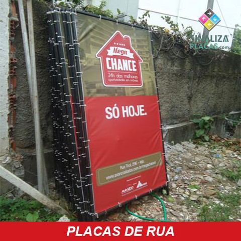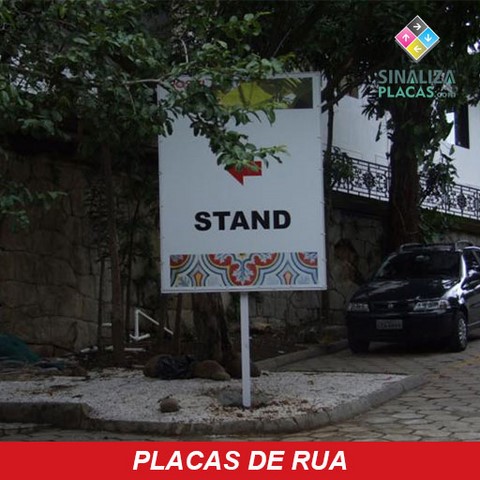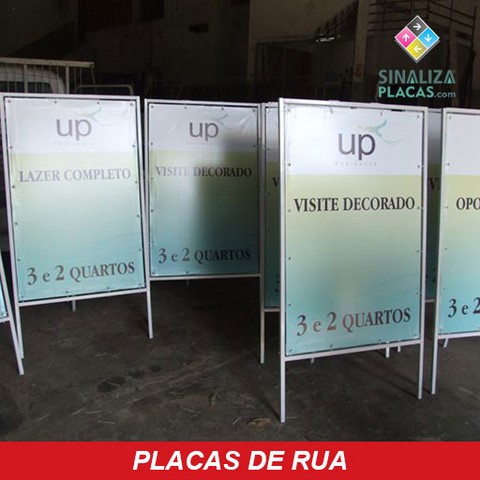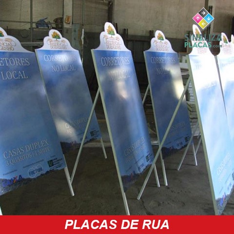 Confeccionada em chapa galvanizada, PVC ou alumínio, com laminação de adesivos vinil refletido, com letras e logotipo, feito em recorte eletrônico (Plotter ) adesivadas nas placas a base de mascara. A estrutura pode ser feita com sarrafo de madeira de 2×2 ou 3×2. ou também com estrutura metálica.