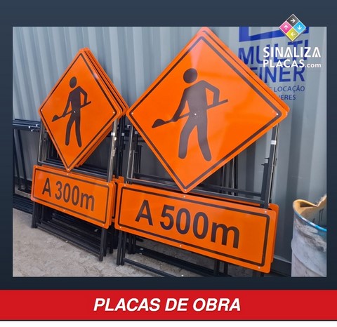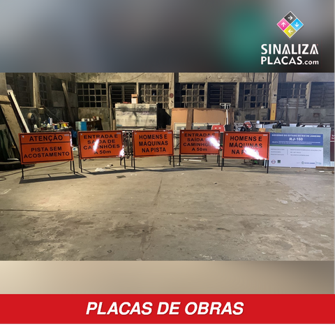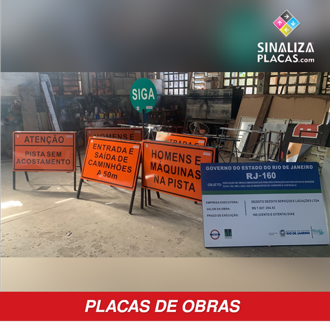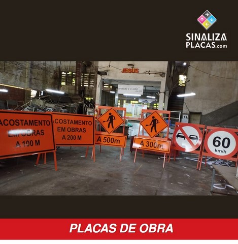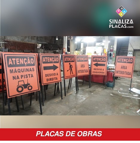 Obras iniciadas ou reformas.Placas de sinalização de obras de trânsito.