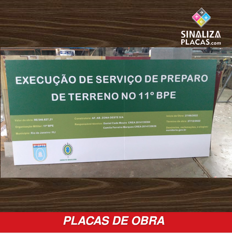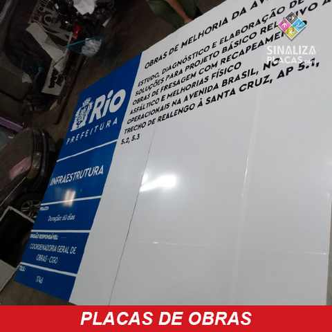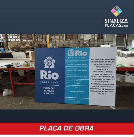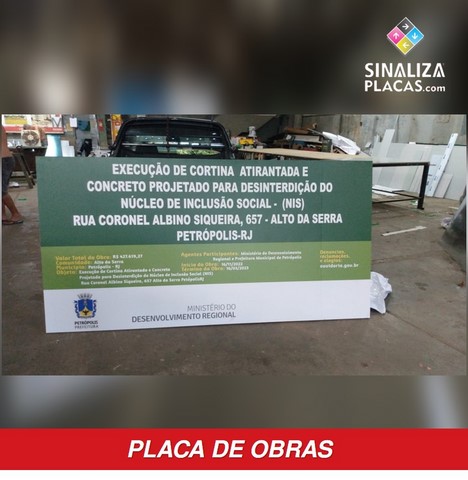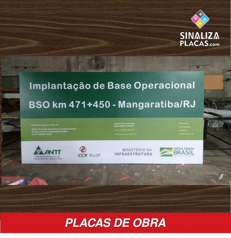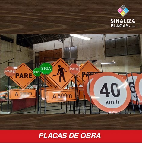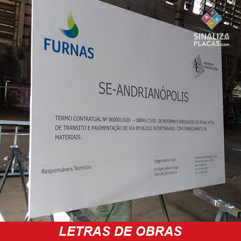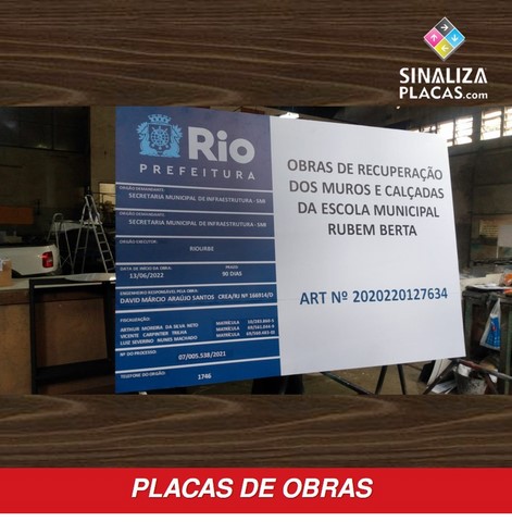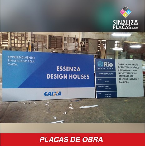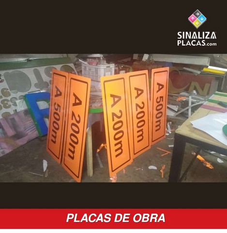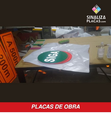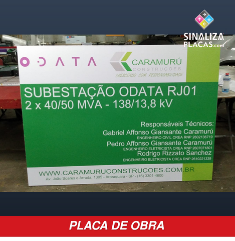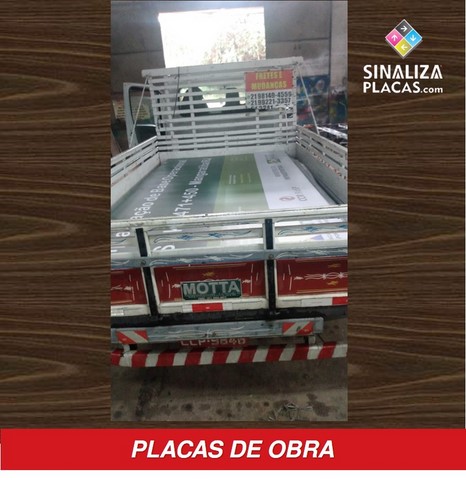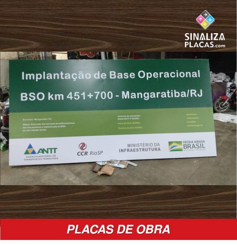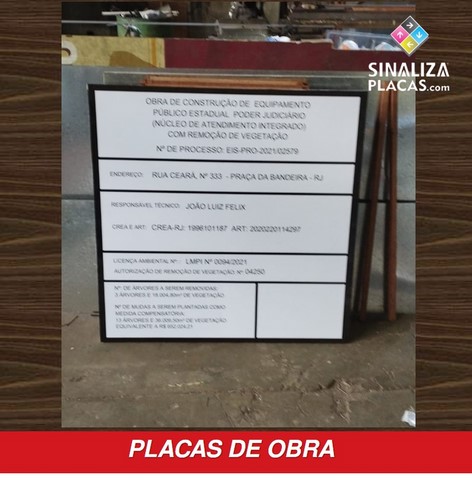 Confeccionada em chapa galvanizada, PVC ou alumínio, com laminação de adesivos vinil refletido, com letras e logotipo, feito em recorte eletrônico (Plotter ) adesivadas nas placas a base de mascara. A estrutura pode ser feita com sarrafo de madeira de 2×2 ou 3×2. ou também com estrutura metálica.