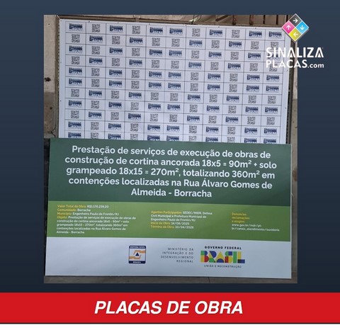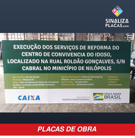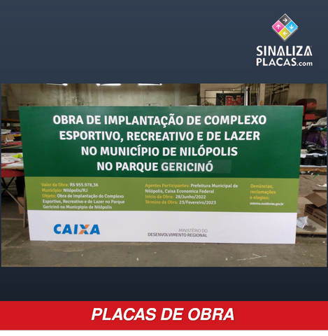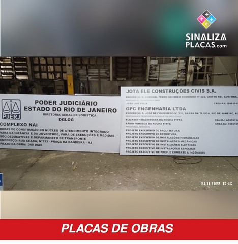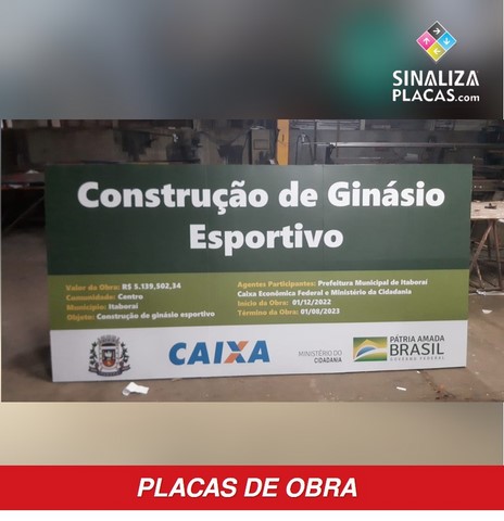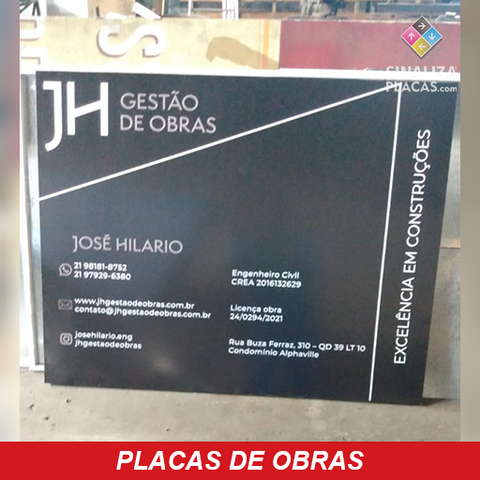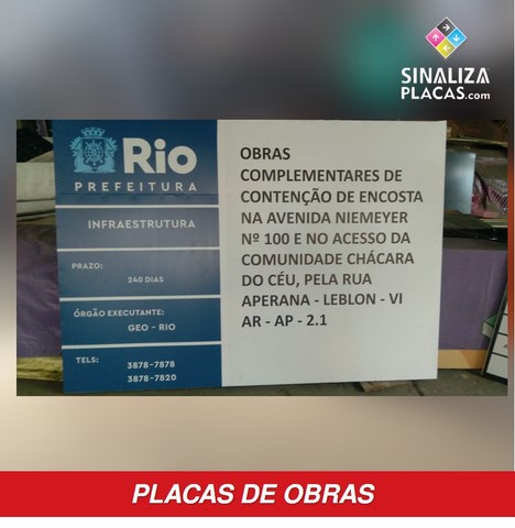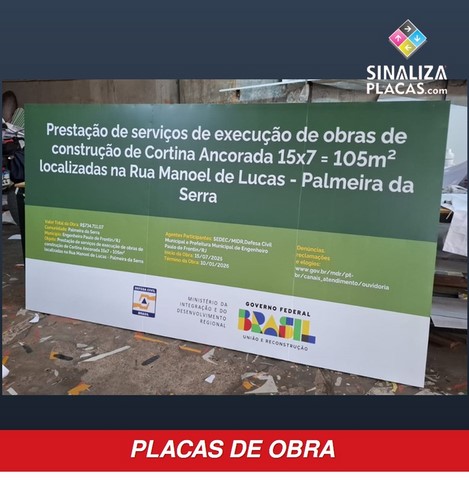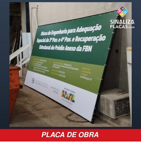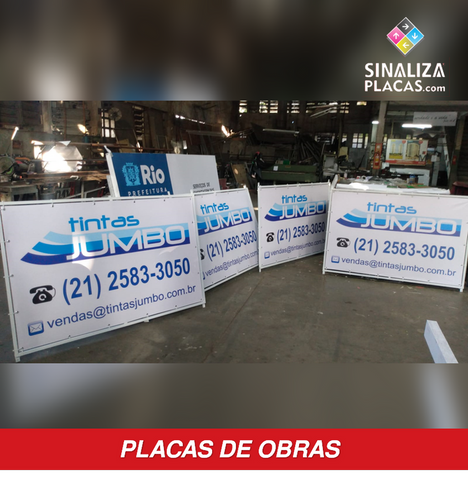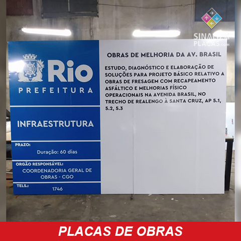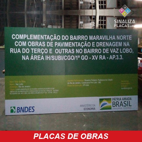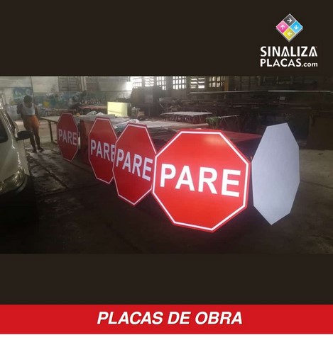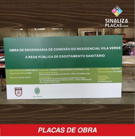 Confeccionada em chapa galvanizada, PVC ou alumínio, com laminação de adesivos vinil refletido, com letras e logotipo, feito em recorte eletrônico (Plotter ) adesivadas nas placas a base de mascara. A estrutura pode ser feita com sarrafo de madeira de 2×2 ou 3×2. ou também com estrutura metálica.