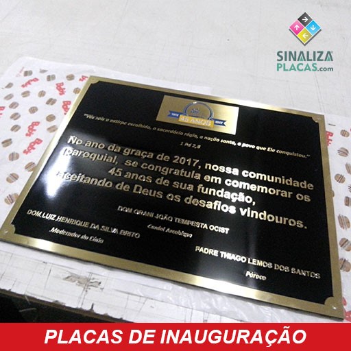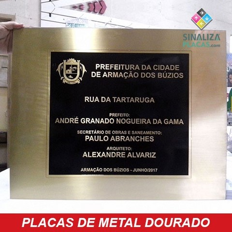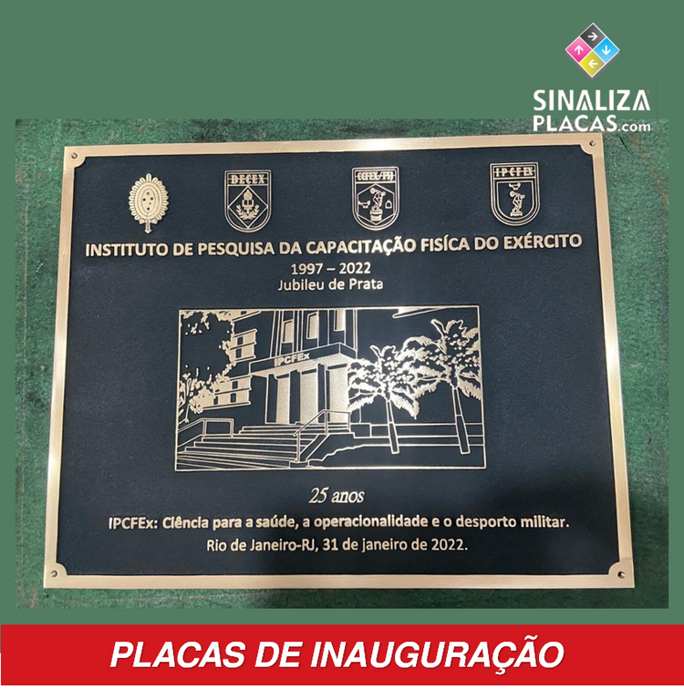 PLACAS DE INAUGURAÇÃO: CONFECCIONADAS EM BRONZE FUNDIDO, METAL DOURADO OU AÇO ESCOVADO EM BAIXO OU ALTO RELEVO, FIXAÇÃO COM PARAFUSOS OU FITA DUPLA FACE DA 3M.