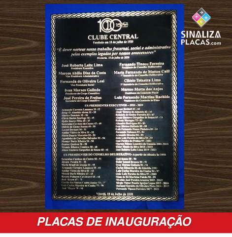 Este tipo de placa é muito usada em: INAUGURAÇÃO OU HOMENAGEM