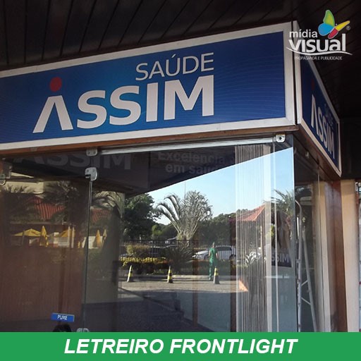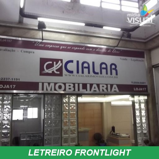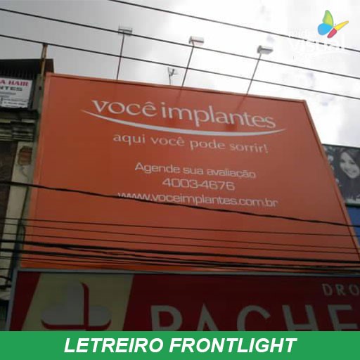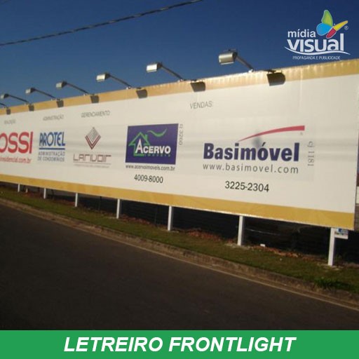 Nossos Letreiros Front-Light são estruturados em ferro metalon, tratado e pintado. Na sua parte frontal o letreiro front light recebe uma lona impressa em máquina de impressão de alta resolução, sendo a iluminação do front light através de spots direcionáveis. O Letreiro Front-Light recebe o mesmo acabamento em cantoneira de ferro virada, tratada e pintada.
