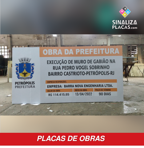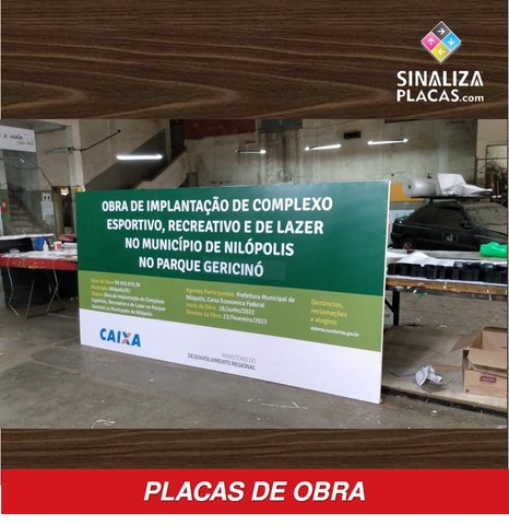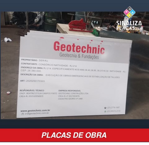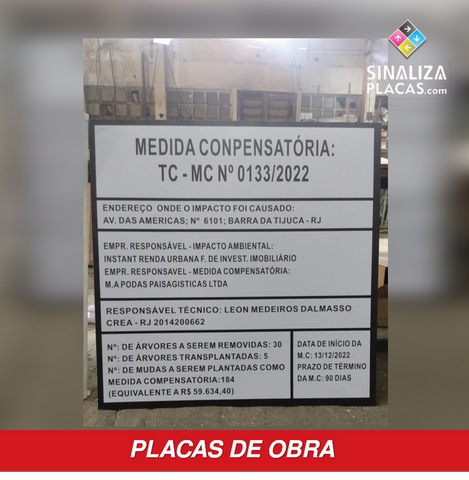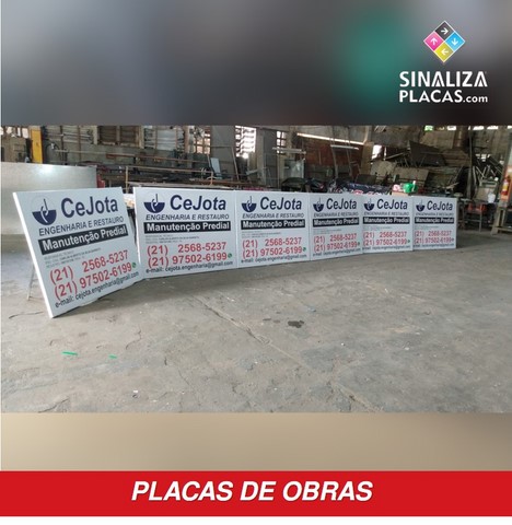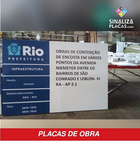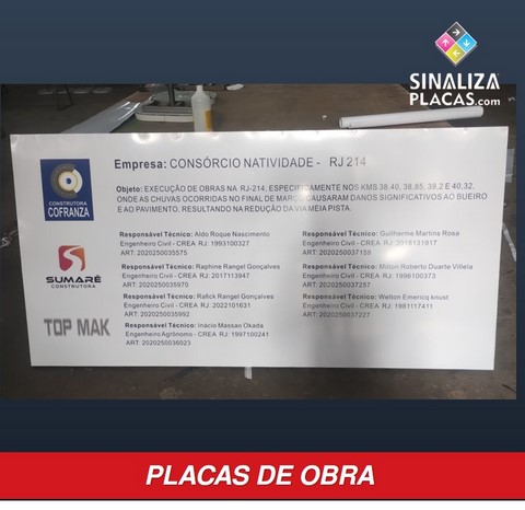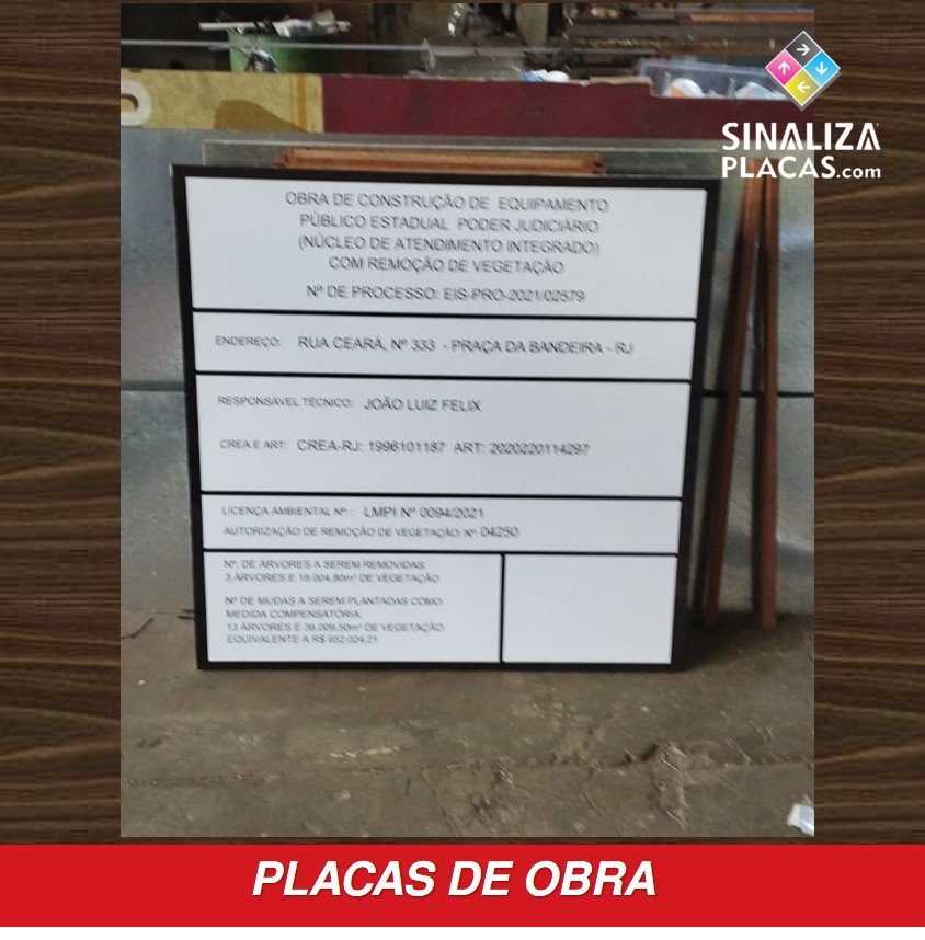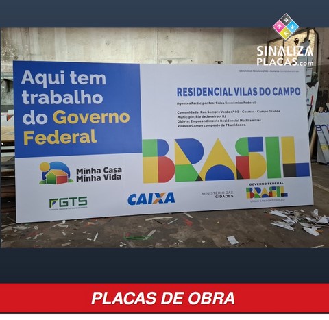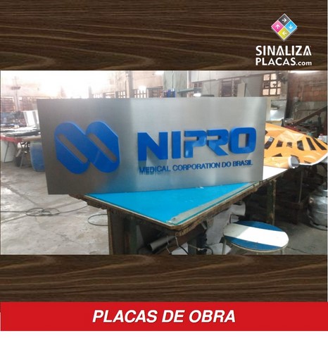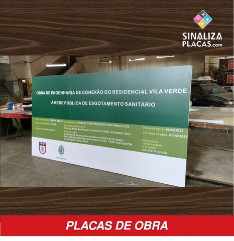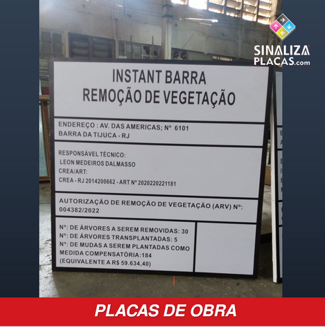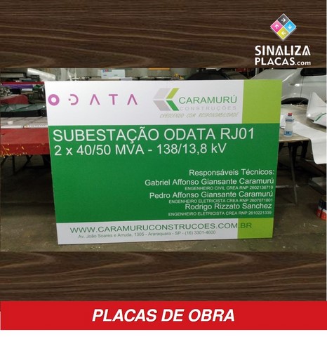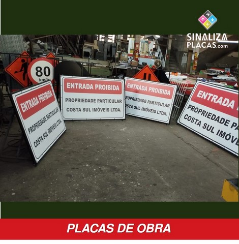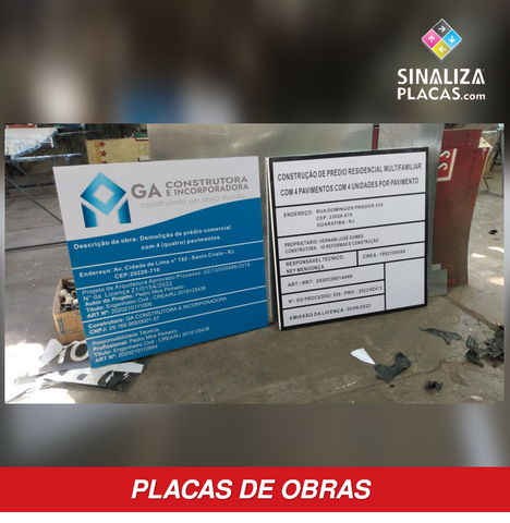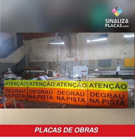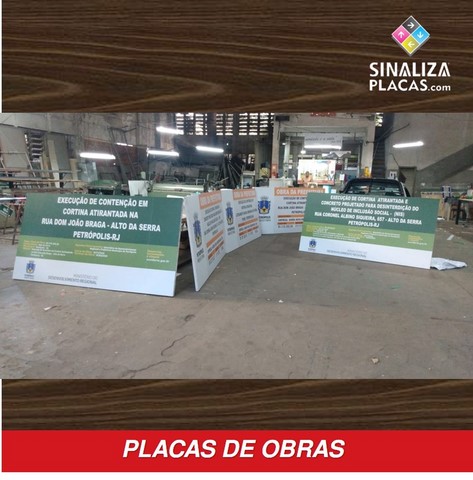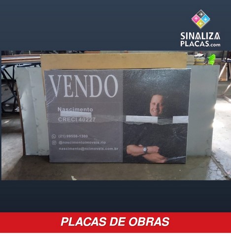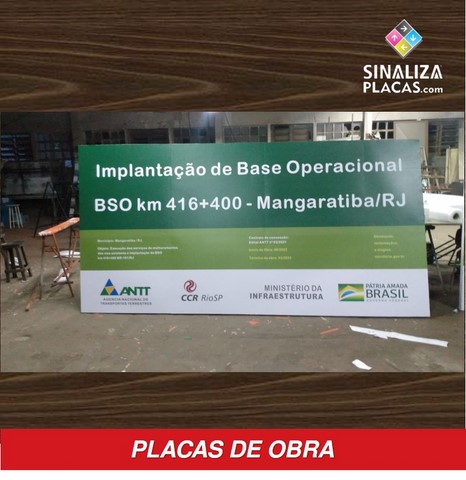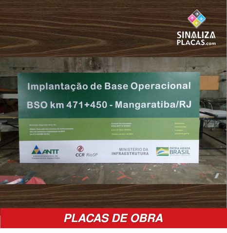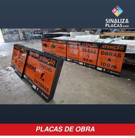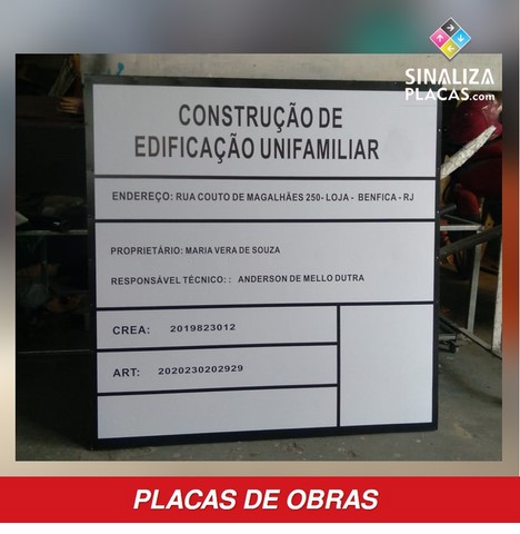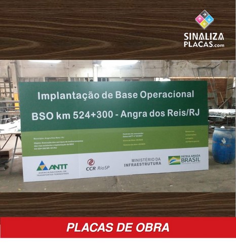 Confeccionada em chapa galvanizada, PVC ou alumínio, com laminação de adesivos vinil refletido, com letras e logotipo, feito em recorte eletrônico (Plotter ) adesivadas nas placas a base de mascara. A estrutura pode ser feita com sarrafo de madeira de 2×2 ou 3×2. ou também com estrutura metálica.