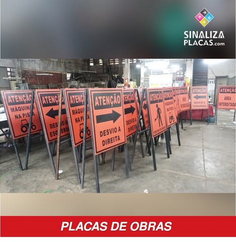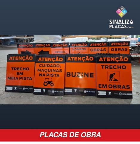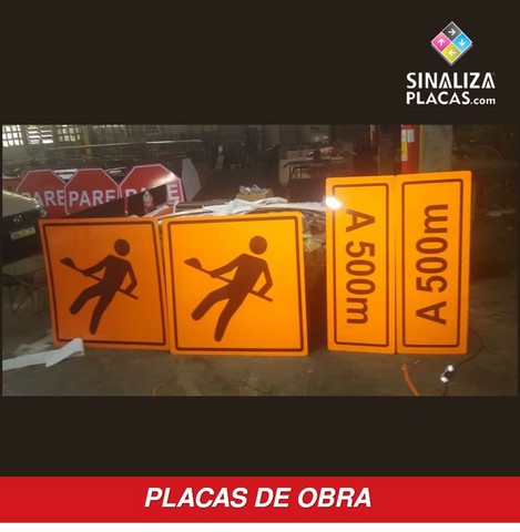 Obras iniciadas ou reformas.Placas de sinalização de obras de trânsito.