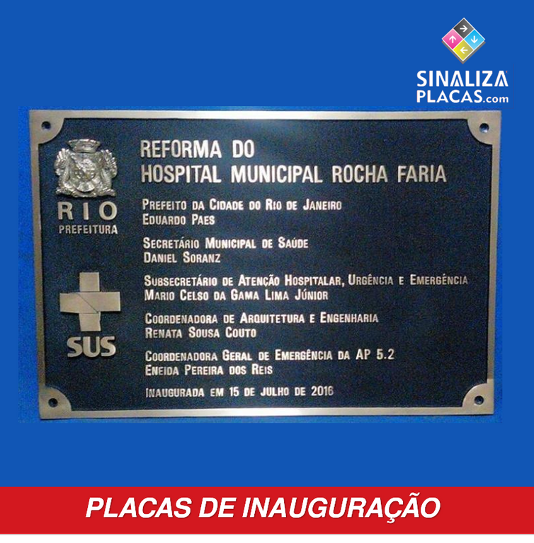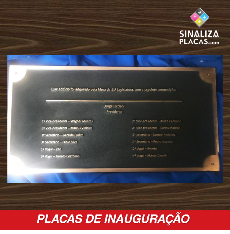 Este tipo de placa é muito usada em: INAUGURAÇÃO OU HOMENAGEM