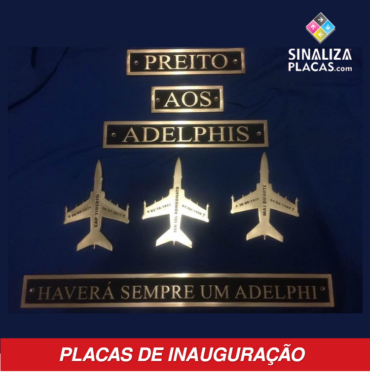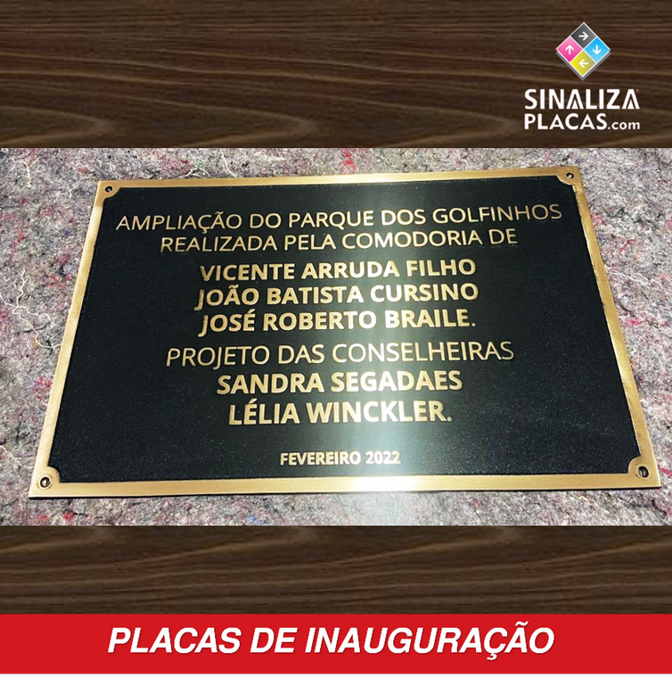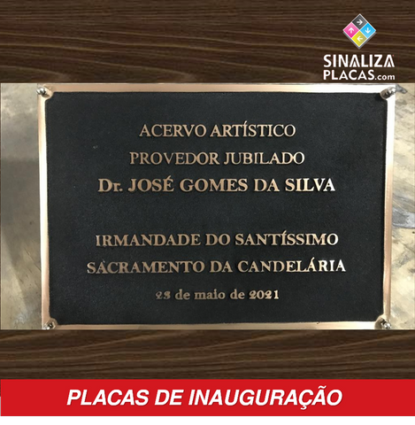 PLACAS DE INAUGURAÇÃO: CONFECCIONADAS EM BRONZE FUNDIDO, METAL DOURADO OU AÇO ESCOVADO EM BAIXO OU ALTO RELEVO, FIXAÇÃO COM PARAFUSOS OU FITA DUPLA FACE DA 3M.